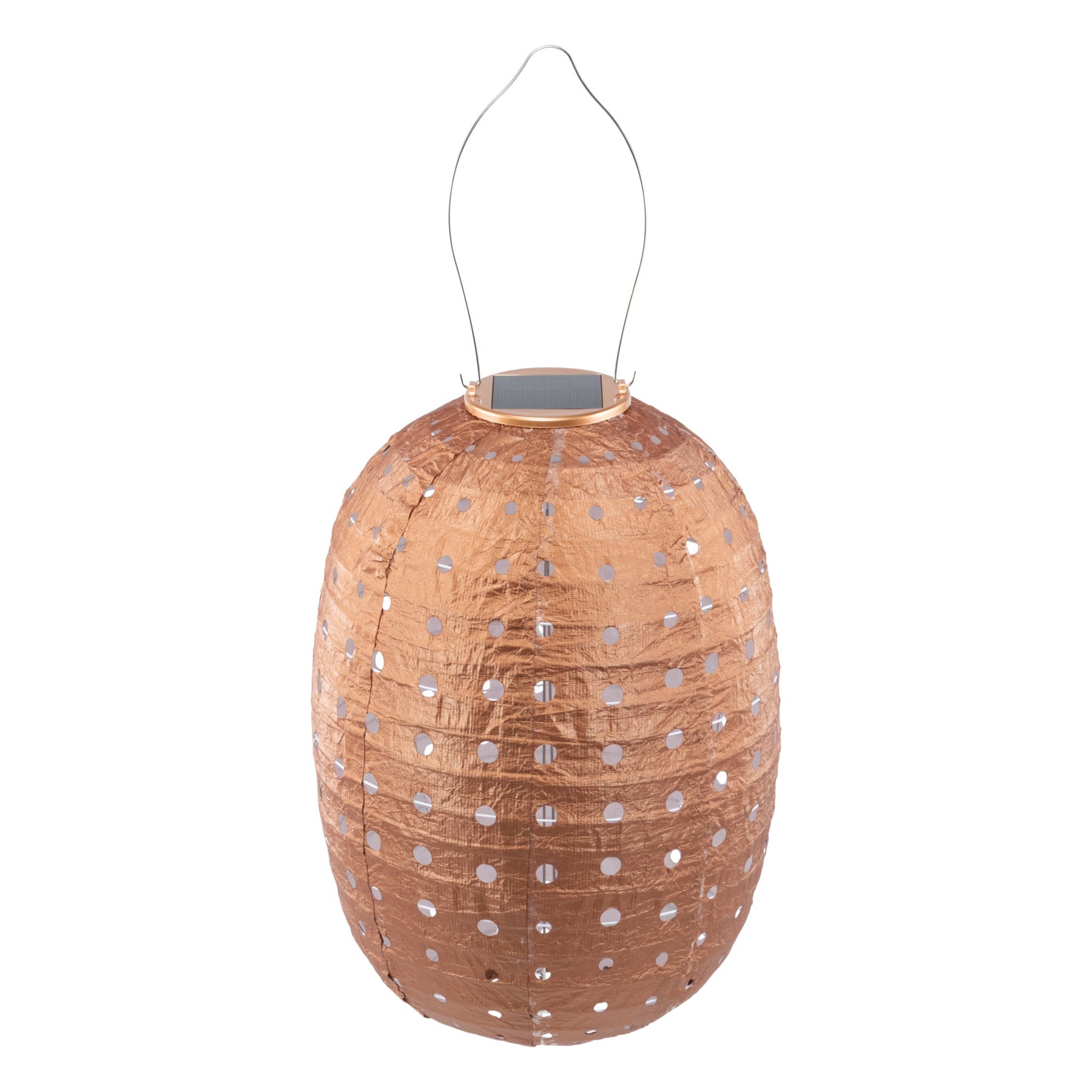 Bring a warm, welcoming glow to your outdoor spaces with the Stella Barrel Solar Lantern. Handcrafted from ultra durable Tyvek, this lantern pairs lightweight strength with refined design. Its delicate Swiss dot punch pattern scatters enchanting light across patios, pathways, and garden landscapes, creating a softly luminous atmosphere from every angle.